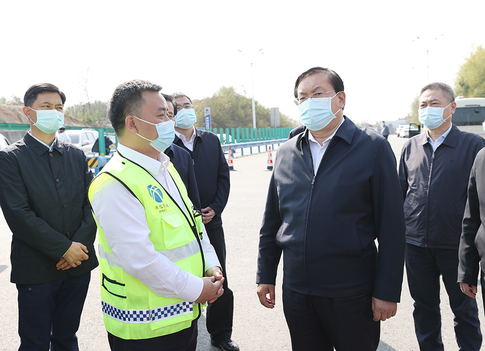 王忠林来到麻竹高速随州南匝口,看望慰问防疫一线工作人员,听取道路交通管控、进出车辆管理、消杀等情况介绍,叮嘱大家加强个人防护、注意交通安全,严格落实“落地检”要求,做好重点地区人员信息登记、转运隔离、核酸检测等工作,切实守住守牢疫情防控关口。