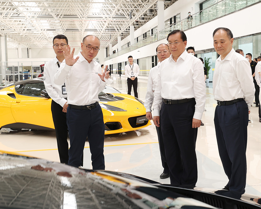 路特斯全球智能工厂负责路特斯品牌高端纯电汽车的车型开发和整车制造,是全球首家全工序采用3D数字孪生技术规划设计和建设的工厂。王忠林认真听取路特斯产品及生产规划介绍,叮嘱企业瞄准国际国内高端市场,持续加强技术研发,推出更多主力畅销车型,助力我省打造全国新能源与智能网联汽车产业高地。他希望吉利集团进一步加大在鄂产业布局,加强汽车芯片、自动驾驶等领域“卡脖子”关键核心技术攻关,助推湖北汽车产业转型升级;加快低空飞行器、手机等项目推进力度,力争早建成、早投产、早达效;充分发挥龙头企业带动力,引领更多产业上下游企业落户湖北,为我省建设全国构建新发展格局先行区作出更大贡献。