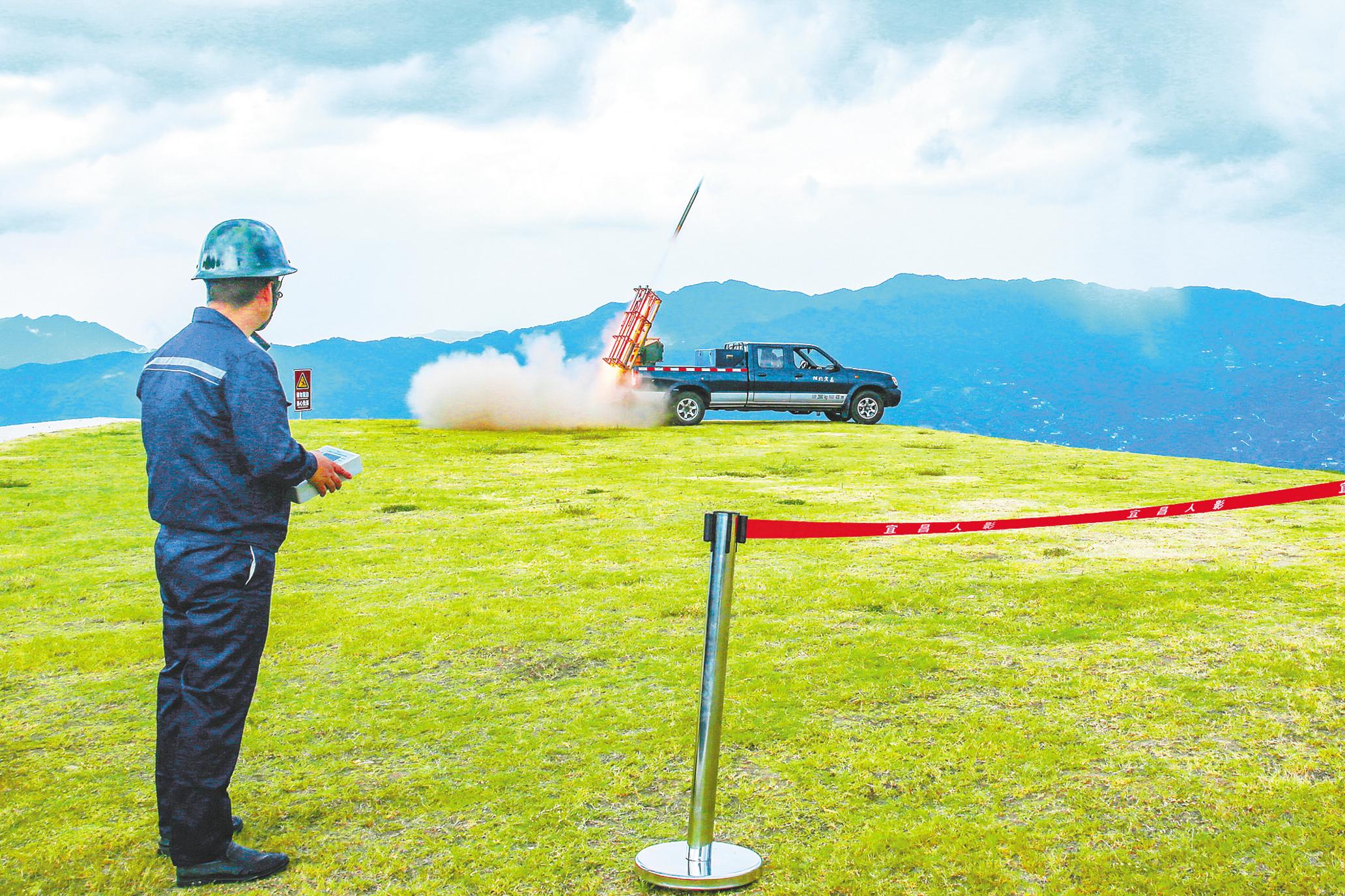 8月16日,流动式火箭车在秭归县进行人工增雨作业。(王罡 摄)