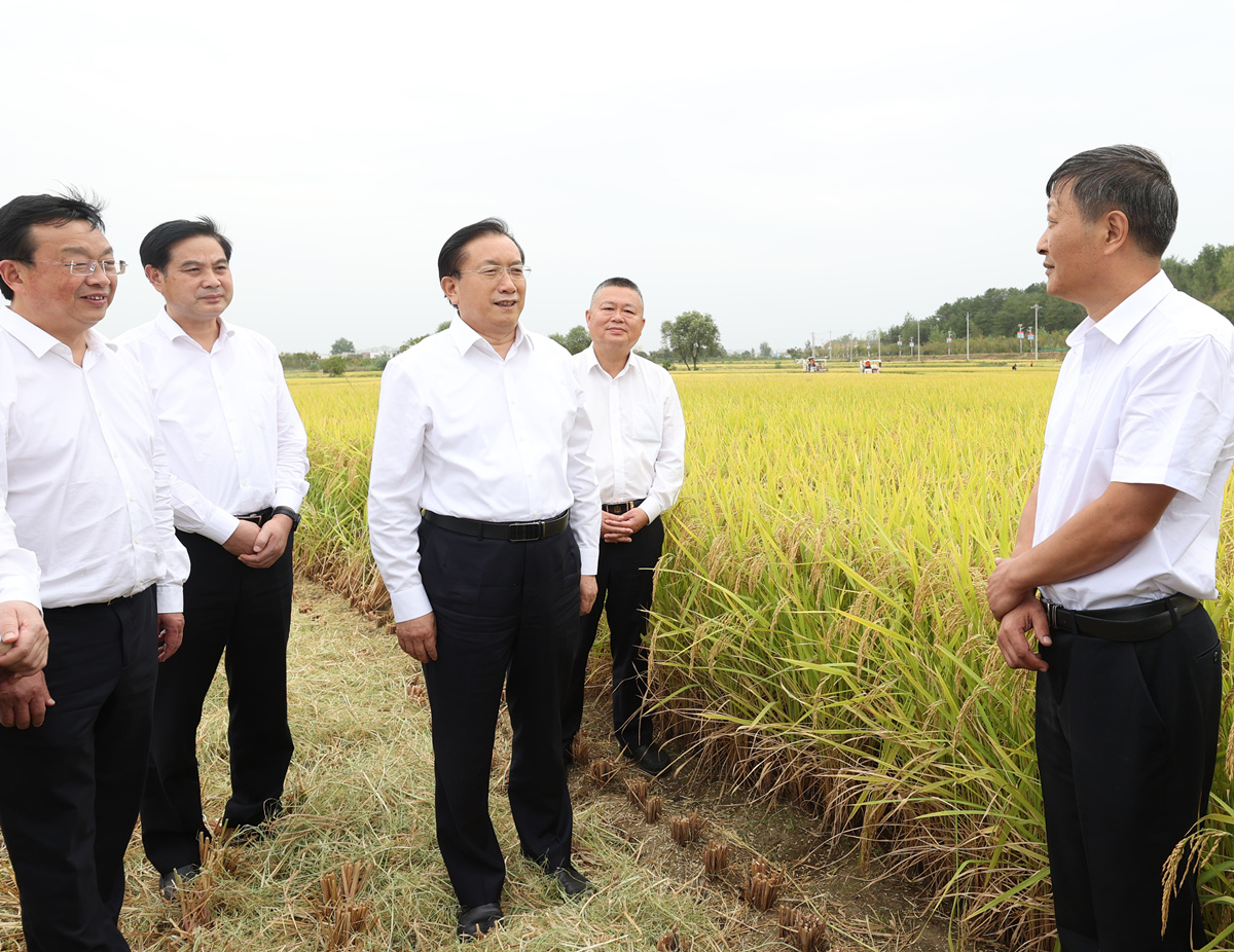 五脑山林场虎形地村李家洼垸,收割机在稻田里来回穿梭,一派丰收景象。王忠林对麻城市积极应对高温干旱天气、实现秋粮产量稳中有增给予肯定。他指出,当前正值秋收的关键时期,要全力做好机收组织服务,确保应收尽收、颗粒归仓。要不误农时抓播种,落实好抗旱保苗、田间管理等措施,加快农田水利基础设施建设,打牢明年丰产基础。要狠抓各项惠农政策落实,加大对粮食专业合作社、种粮大户等的支持帮扶力度,充分调动种粮积极性。要强化农业科技创新,培育更多具有自主知识产权的优良品种,加大先进农机推广力度,加快发展智慧农业、数字农业。