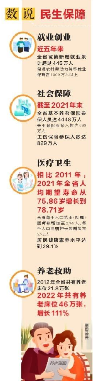 党的十八大以来,省委、省政府深入贯彻习近平新时代中国特色社会主义思想,始终把增进人民福祉、促进人的全面发展作为出发点和落脚点,举措频出,坚持发展为了人民、发展依靠人民、发展成果由人民共享,全省民生改善力度只增不减,民生保障网不断织密织牢。从衣食住行到业教保医,“以人民为中心”的发展思想,投射在百姓生活的细节里,提升“民生温度”的孜孜追寻,浸润着“人民对美好生活的向往”。