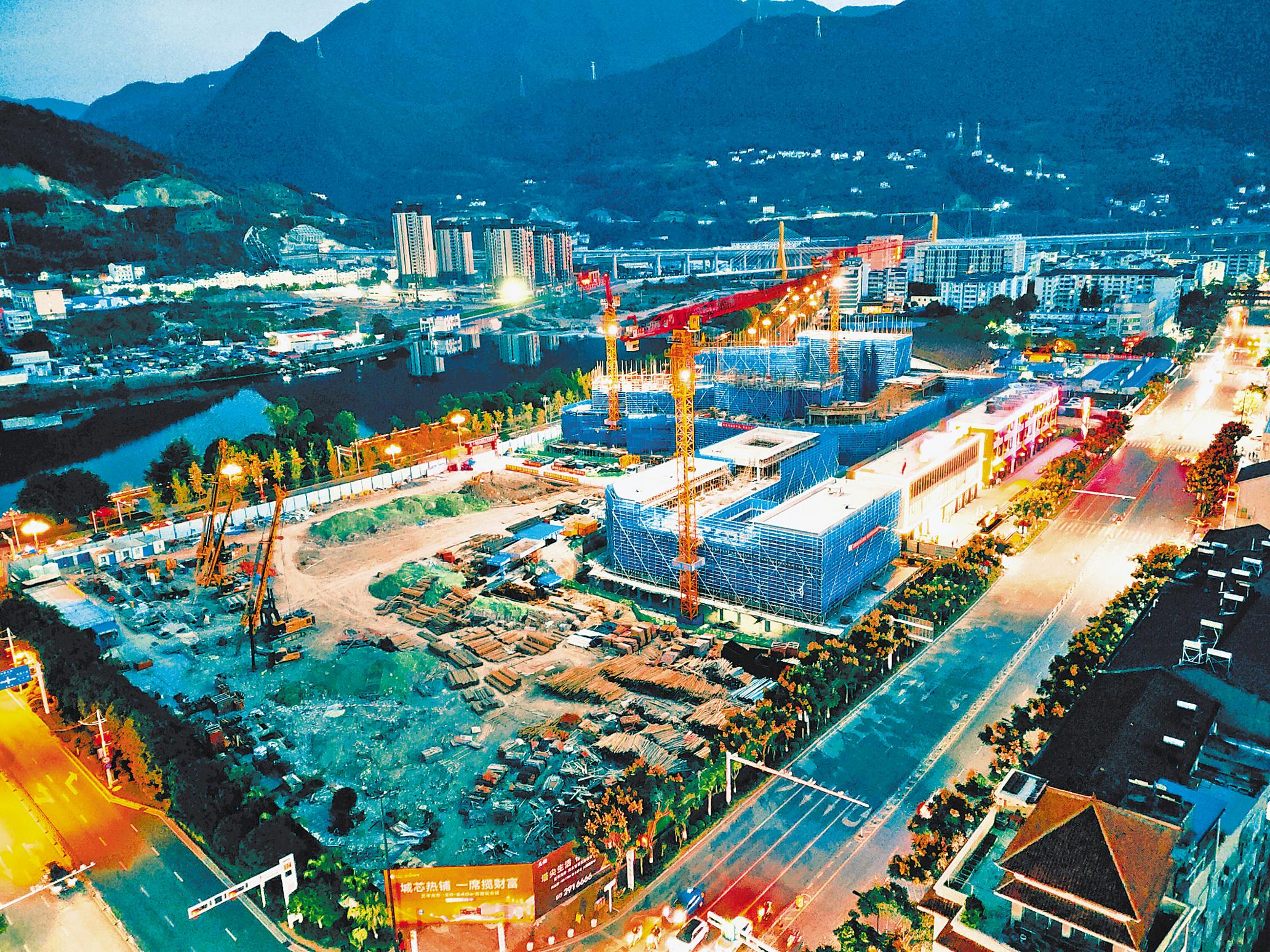 10月17日,夜色中正在建设的爱琴海文旅商业综合体项目。 (通讯员 王久銮 摄)