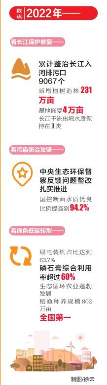 长江保护修复提档升级。深入实施长江高水平保护十大攻坚提升行动,累计整治长江入河排污口9067个,新增植树造林231万亩、湿地修复4万亩,长江干流出境水质保持在Ⅱ类,“水清岸绿、江豚逐浪”的美景再次呈现在人们面前。