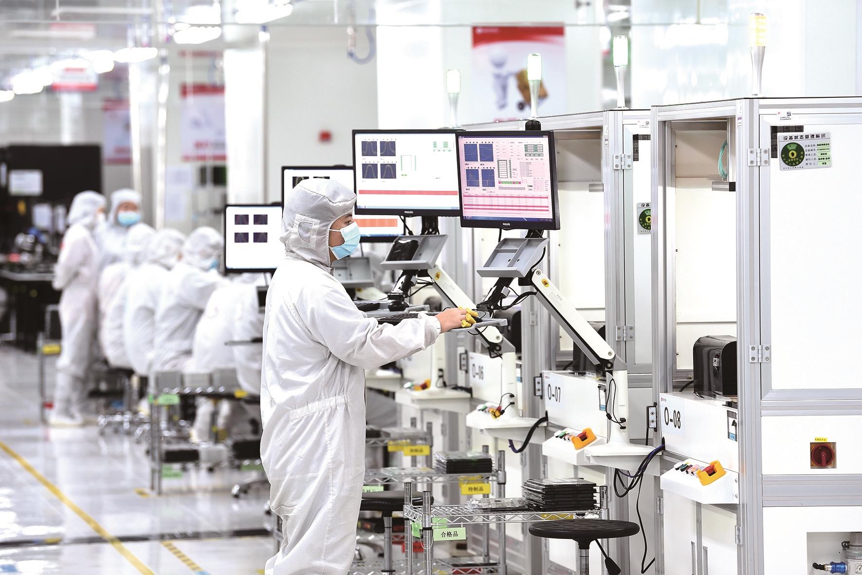 华工科技联接业务数据中心生产车间正在生产其自主研发的数据中心用光模块。(李溪 摄)