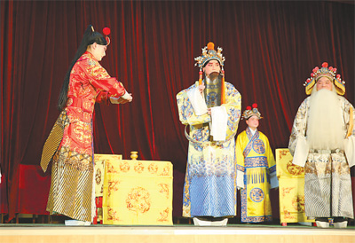 图为武汉楚剧院到新洲区潘塘文化中心开展送戏下乡活动,演出经典剧目《打金枝》。(王郭骥摄)