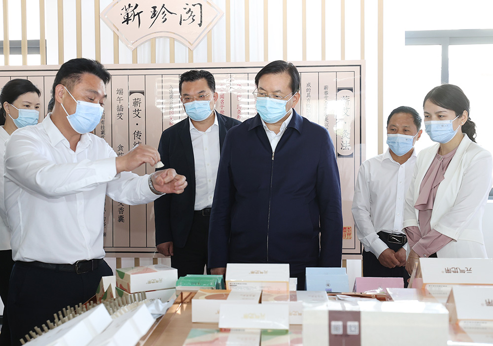 近年来,蕲春县大力发展以蕲艾为主导的中医药产业,蕲艾品牌价值达到105亿元,中药材产业综合产值超过150亿元、带动近30万人就业。王忠林来到李时珍中医药大健康科技产业园,察看产品展示,听取蕲艾产业发展情况介绍;深入种植基地,察看蕲艾长势,询问种植收益及带动农民增收情况;考察李时珍纪念馆,了解中医药文化保护传承情况。他要求黄冈市和蕲春县深入挖掘、弘扬李时珍文化,邀请名医大家、组织开展高水平宣传推介活动,充分展示中医药文化魅力,提升“李时珍”“本草纲目”品牌知名度、美誉度;加强向上争取,搭建高层次研发平台,助推中医药创新发展;用好蕲艾地理标志品牌,推动规模化种植、标准化发展,培育壮大龙头企业,实现一二三产业融合发展,为我省打造万亿级大健康产业集群作出积极贡献。