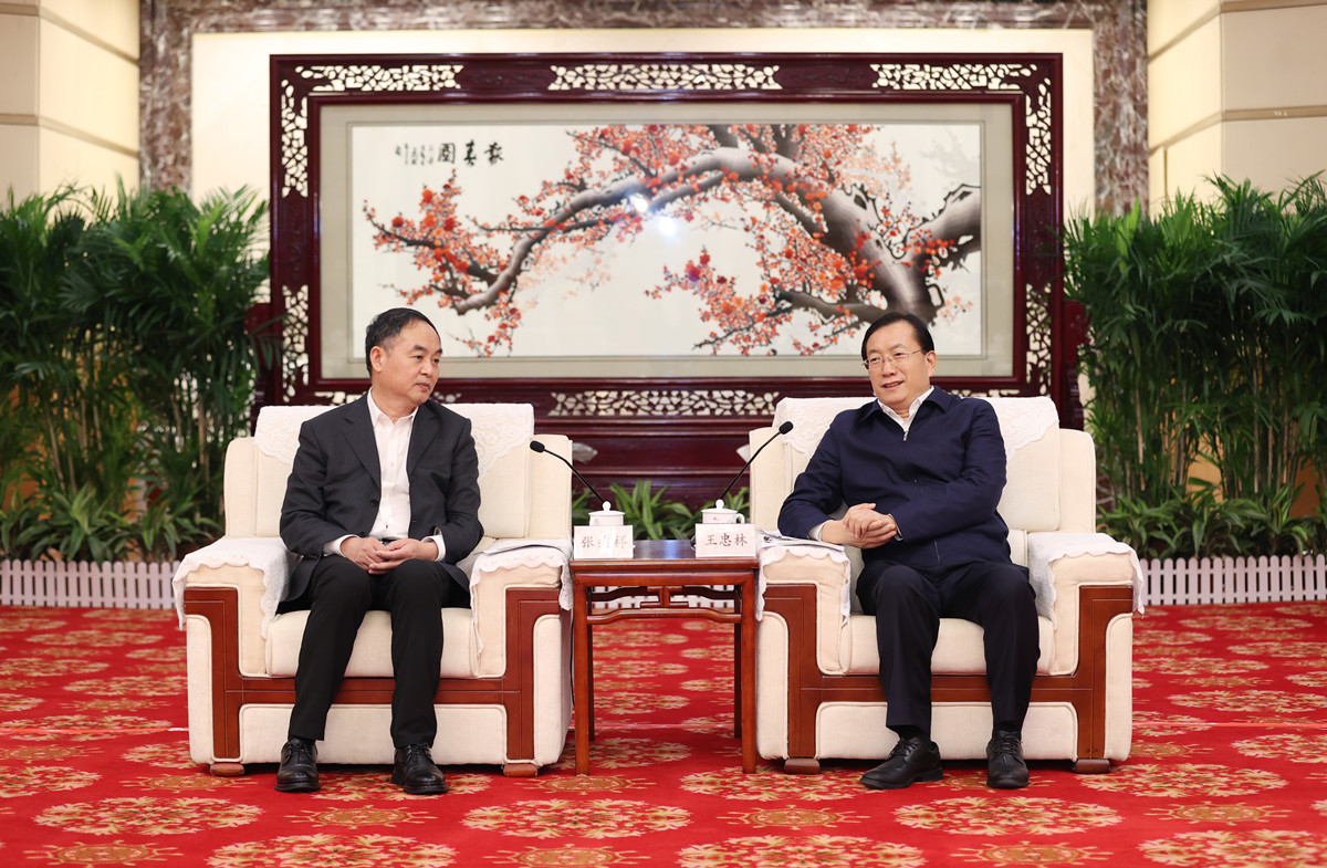 5月10日,省委副书记、省长王忠林与来汉参加湖北省建筑业高质量发展论坛的中国建筑集团有限公司总经理张兆祥座谈交流。