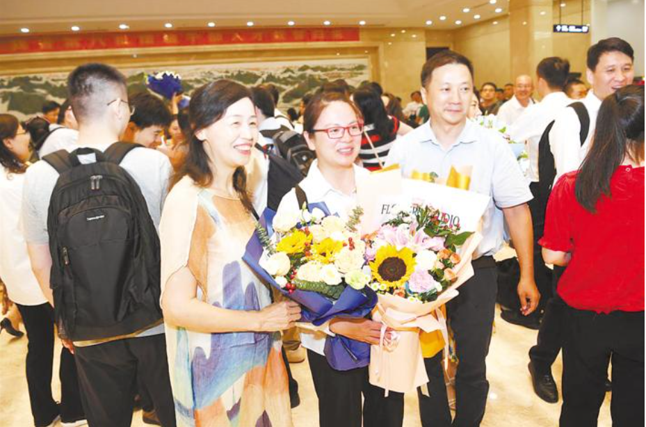 我省援疆干部人才在机场受到亲人、同事的热烈欢迎。(李溪 摄)