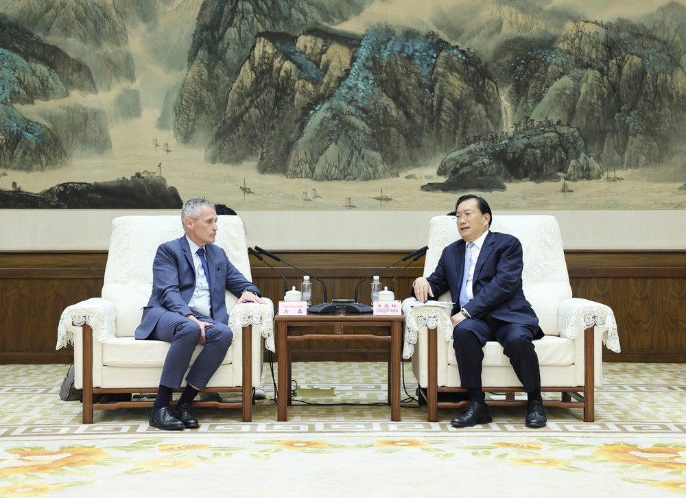 7月12日下午,省委副书记、省长王忠林在汉会见来鄂参加“电化长江‘零碳’有道”船舶电气化技术高峰论坛的丹麦驻华大使马磊一行。副省长陈平参加会见。