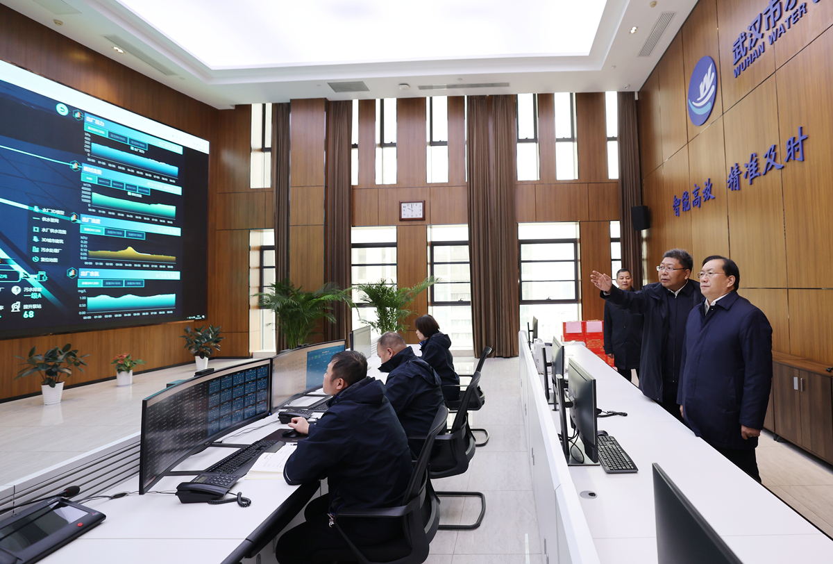 在武汉市水务集团调度指挥中心,王忠林详细了解防冻保供水情况,强调要紧盯重点部位和薄弱环节,未雨绸缪做好极端天气下供水管网防冻工作,完善应急预案、加强应急处置,切实保障群众用水需求。