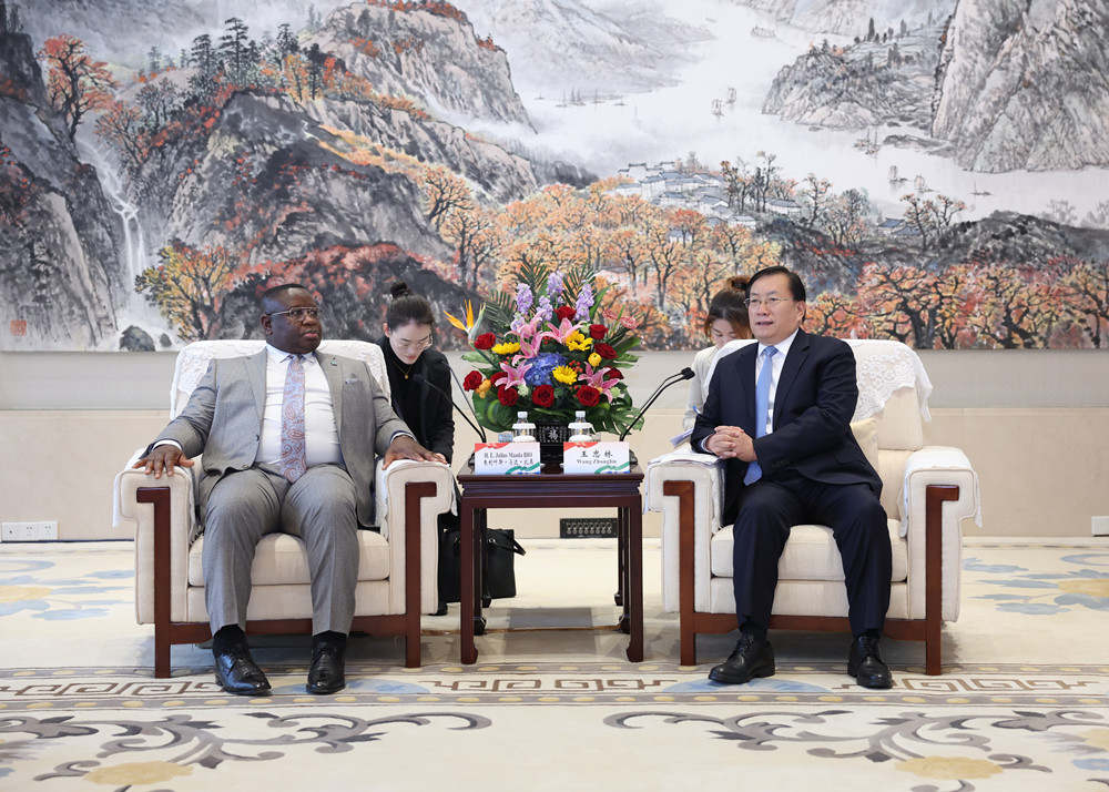 中国驻塞拉利昂大使王擎,省领导陈平、蔚盛斌参加会见。(湖北日报记者杨念明、张朋)