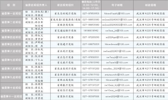 据悉,本轮巡视工作时间一个半月左右。期间设立专门值班电话、邮政信箱、电子邮箱和“荆楚码上巡”信访反映二维码,主要受理反映被巡视党组织领导班子及其成员、下一级主要负责人和重要岗位领导干部问题的来信、来电,重点是关于违反政治纪律、组织纪律、廉洁纪律、群众纪律、工作纪律和生活纪律等方面的举报和反映。巡视组受理信访时间截至4月25日。(杨宏斌、何方、王婧)