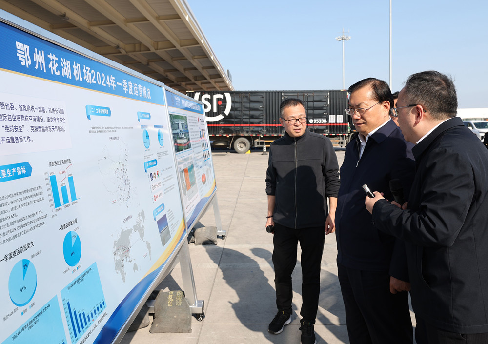 4月9日,省委副书记、省长王忠林到鄂州花湖机场调研并召开现场办公会强调,要深入贯彻习近平总书记在新时代推动中部地区崛起座谈会上的重要讲话精神,落实省委、省政府工作部署,全力推动花湖机场打造国际自由贸易航空港,更好服务和融入新发展格局,为加快建成中部地区崛起重要战略支点提供有力支撑。