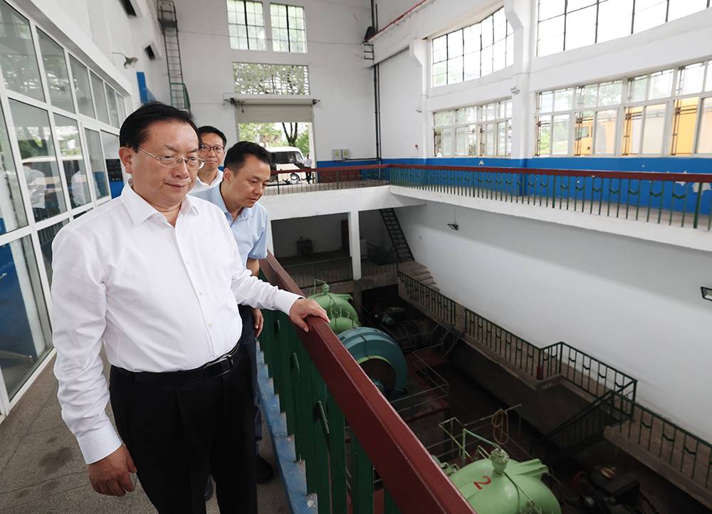 胜阳港泵站承担着黄石中心城区的渍水抽排任务。王忠林进入泵站,慰问一线值守人员,了解泵站机组运行、水闸管养、防险排涝等情况,要求加强工程设施维护管理,确保高效运转;叮嘱省有关部门做好抢险装备统筹调配,提升重点地区排涝能力。
