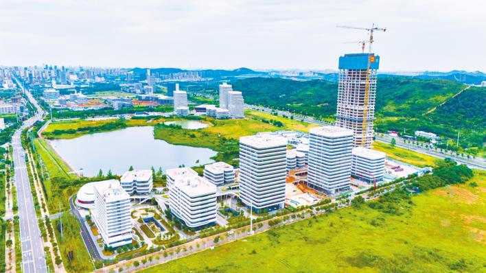 鸟瞰主体结构全部封顶的中国光谷数字经济产业园项目二期。 (魏铼 摄)