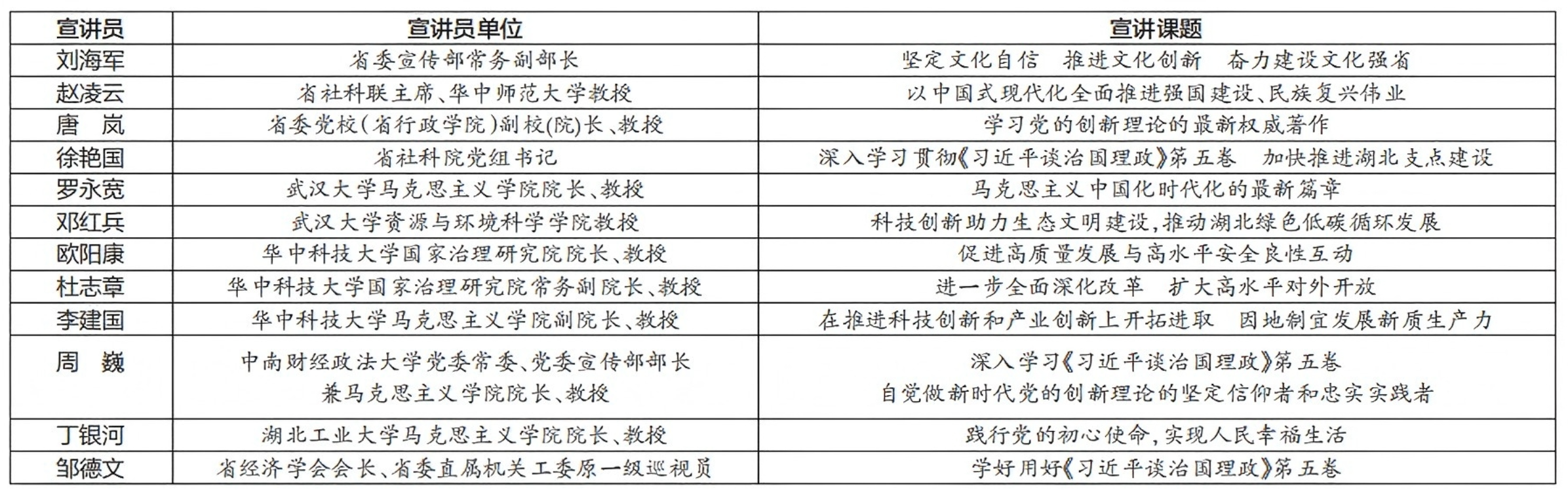 为深入学习宣传贯彻《习近平谈治国理政》第五卷,切实把思想和行动统一到习近平新时代中国特色社会主义思想上来,省委宣传部、省委讲师团组织有关领导干部和专家学者,围绕《习近平谈治国理政》第五卷的核心要义、精神实质和实践要求等内容进行备课,并结合学习前四卷,结合贯彻落实习近平总书记考察湖北重要讲话精神,形成一批点单宣讲课程。面向各市州和省直机关、国有企业、高等院校等单位提供点单宣讲服务,有需求的单位请发邀请函至省委讲师团邮箱jstfdc@vip.163.com,联系电话:027-87234088。(段兰英)