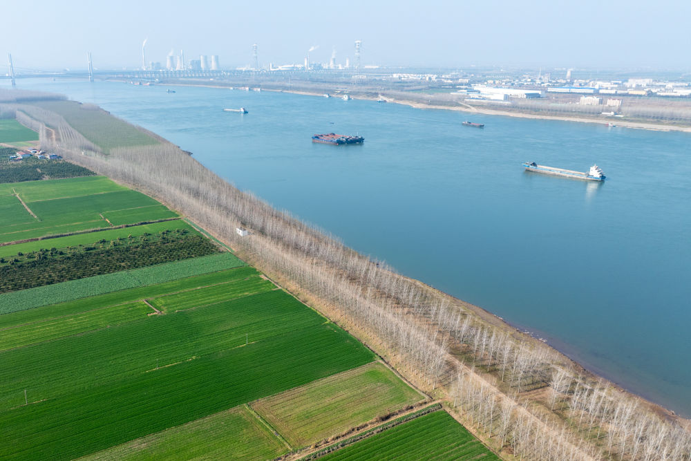2026年1月6日在湖北省荆州市公安县杨家厂镇长江村拍摄的长江荆州段(无人机照片)。杜子璇 摄